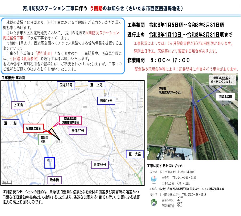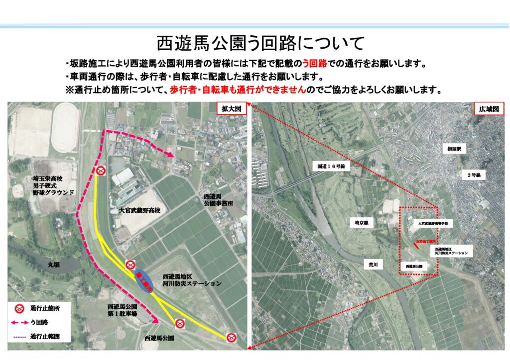 お知らせ!西遊馬公園をご利用する皆様へ「う回のご案内」